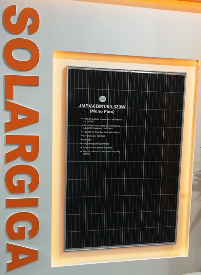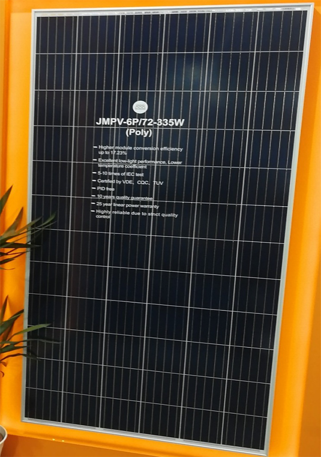 此次錦州陽光能源團(tuán)隊攜最新產(chǎn)品亮相A1-410展臺,備受全場關(guān)注。60片方單晶組件(Mono perc)(JMPV-6BM1/60-330W),72片多晶335W組件Poly(JMPV-6P/72-335W)等高效組件吸引了眾多參展觀眾。