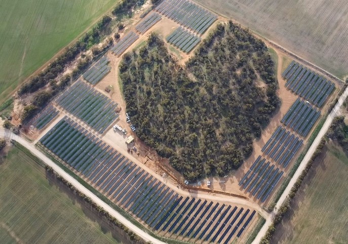 澳大利亞默里河沿岸的一個(gè)小鎮(zhèn)上,從高空俯視下去,能看到一片愛(ài)心形狀的植被。最近,陽(yáng)光能源的組件抵達(dá)了這個(gè)小鎮(zhèn),并與這一片原始森林來(lái)了一場(chǎng)“愛(ài)”的邂逅。