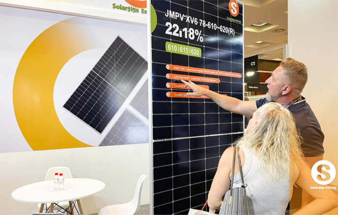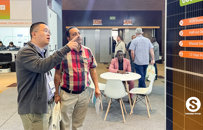 作為全球知名光伏組件制造商,陽(yáng)光能源在本次大會(huì)上向來(lái)自全球的業(yè)界翹楚展示了我司的先進(jìn)技術(shù)和創(chuàng)新產(chǎn)品。陽(yáng)光能源3款Giga-P系列組件面向當(dāng)?shù)卮笮偷孛骐娬镜葢?yīng)用場(chǎng)景,量產(chǎn)功率最高可達(dá)670W;此外,陽(yáng)光能源還展示了1款 Giga-N系列78片雙玻組件產(chǎn)品,以更高效、更前沿的組件特性,俘獲大批觀(guān)眾駐足欣賞。展會(huì)現(xiàn)場(chǎng),陽(yáng)光能源還與當(dāng)?shù)鼗锇楣餐接懥四戏枪夥a(chǎn)業(yè)發(fā)展新機(jī)遇。