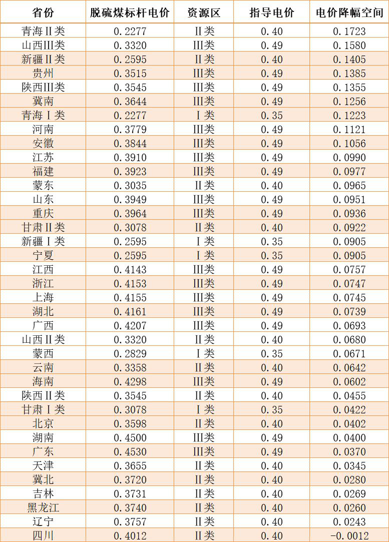 從電價降幅空間來看,青海、新疆二類、山西三類、貴州、陝西、冀南、河南、安徽等地降價幅度均可超過0.1元/千瓦時,相對競價優(yōu)勢更為明顯一些。但以四川、冀北、湖南、廣東以及東三省為代表的地區(qū),電價降幅空間僅有2-3分/千瓦時左右。具體數(shù)據(jù)見下表: