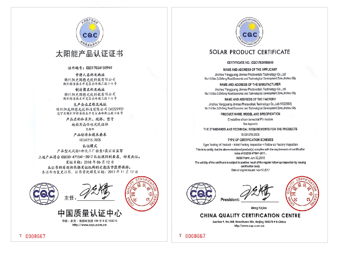 雙玻多晶組件CQC-1